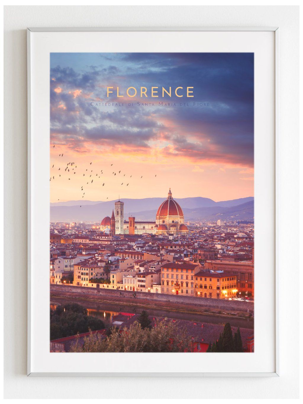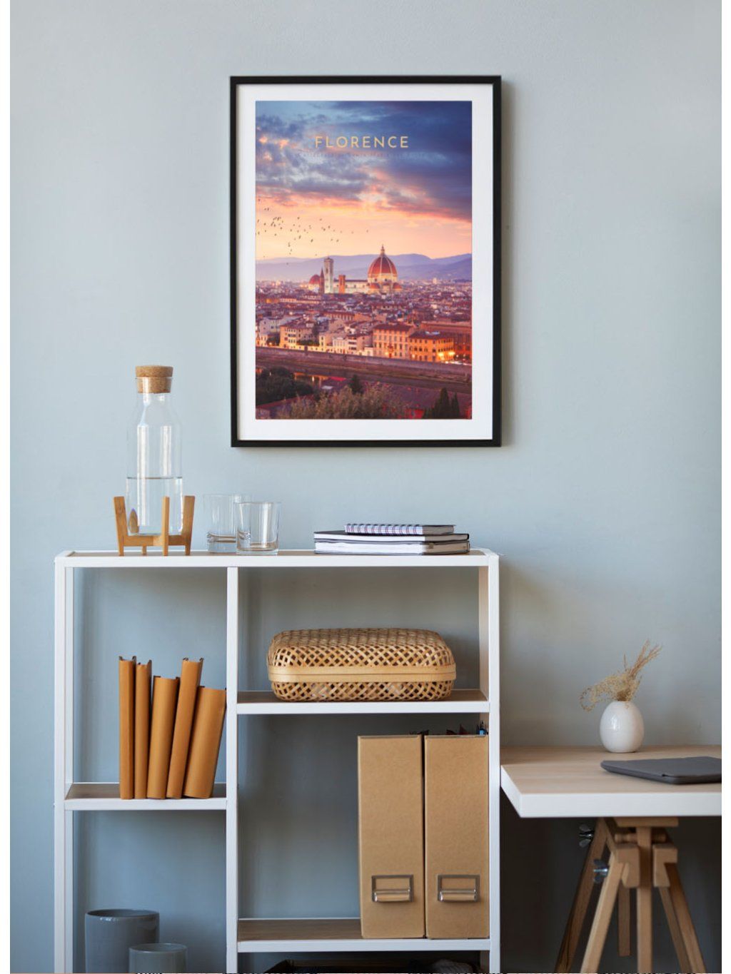 Plakát Florencie katedrála Duomo a S. Maria del Fiore za soumraku s bílým okrajem.