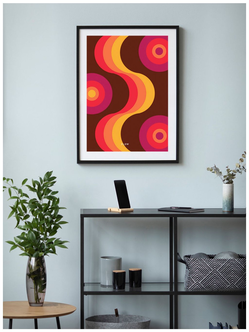 Grafický plakát Flow s bílým okrajem s podpisem autora.