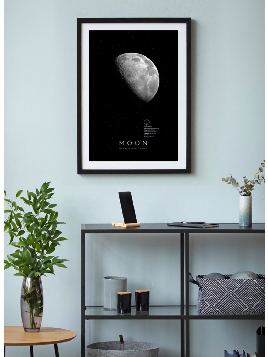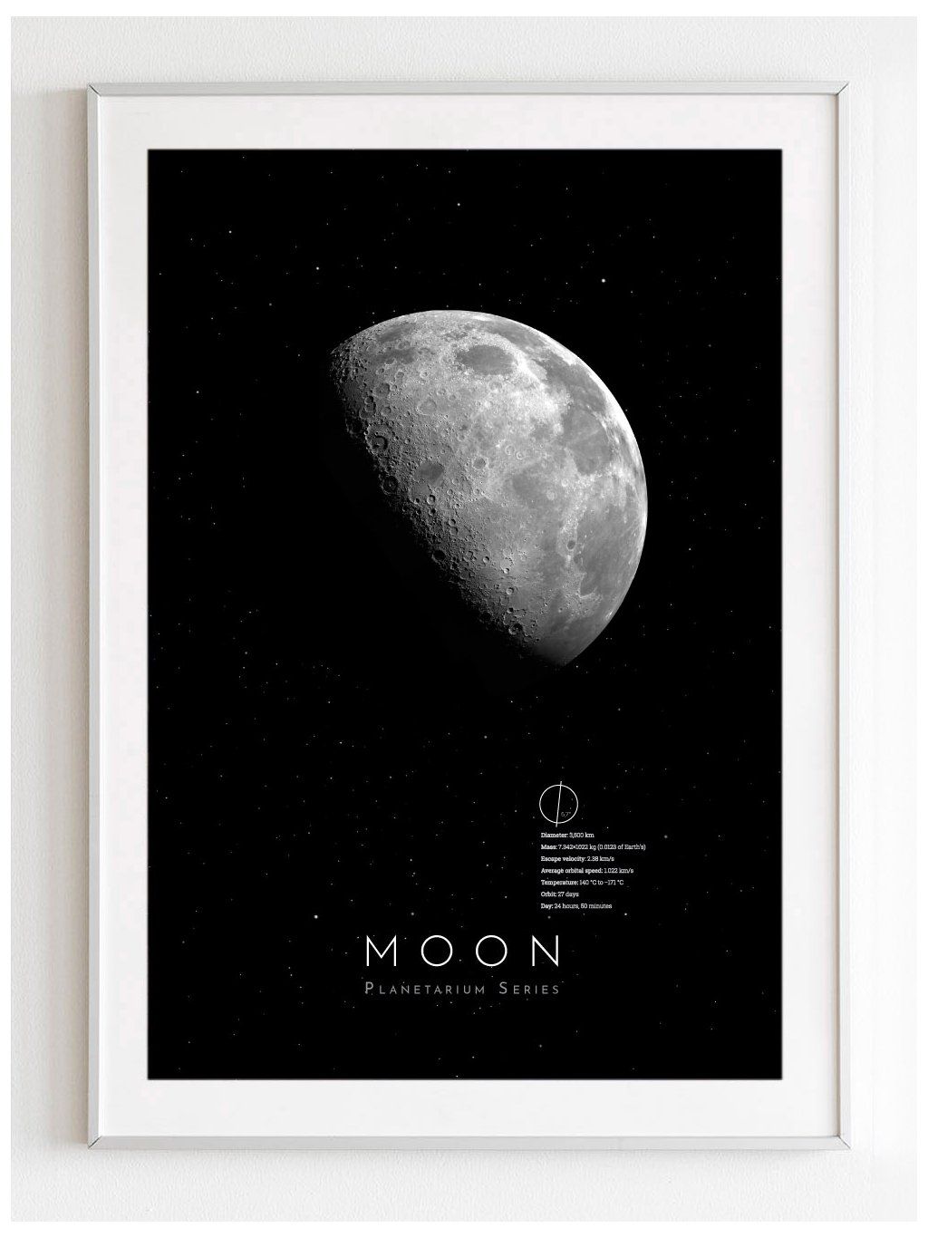 Plakát Měsíc s anglickým popisem s bílým okrajem.