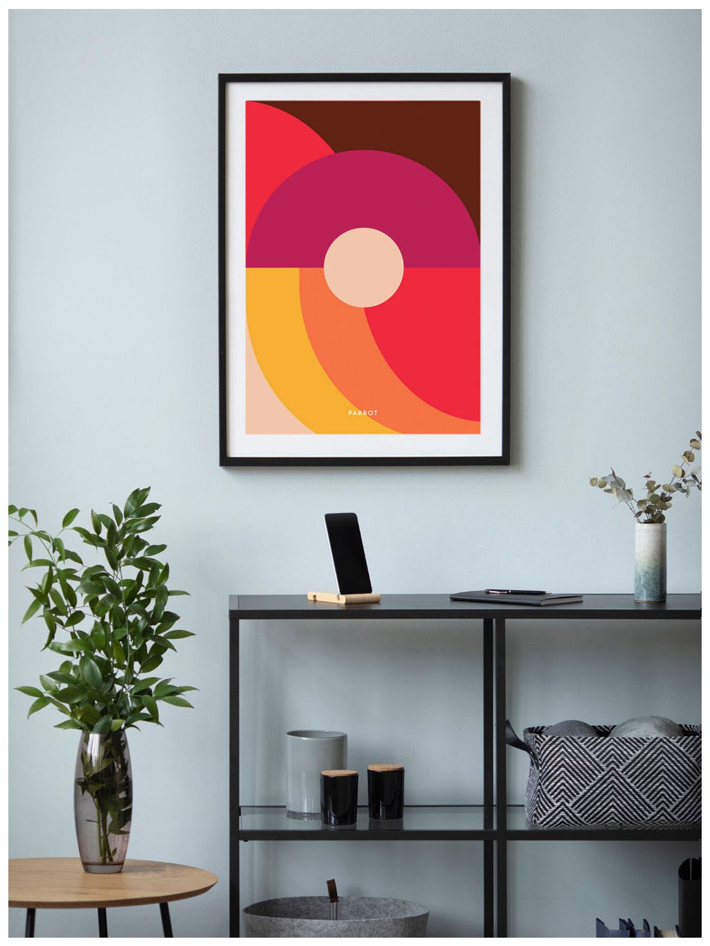Plakát "Parrot" - originální autorské grafické plakáty navržené s důrazem na jedinečnost a estetiku. Každý je součástí jednotné série, která propojuje vizuální prvky do harmonického celku, zároveň barevně ladí v rámci celé série. Tyto plakáty jsou ideální pro moderní interiéry, kde mohou sloužit jako stylový a originální doplněk. Série reflektuje pečlivou práci autora a jeho snahu o propojení umění s emocemi, přičemž každé dílo vypráví svůj vlastní příběh prostřednictvím barev, tvarů a kompozice.