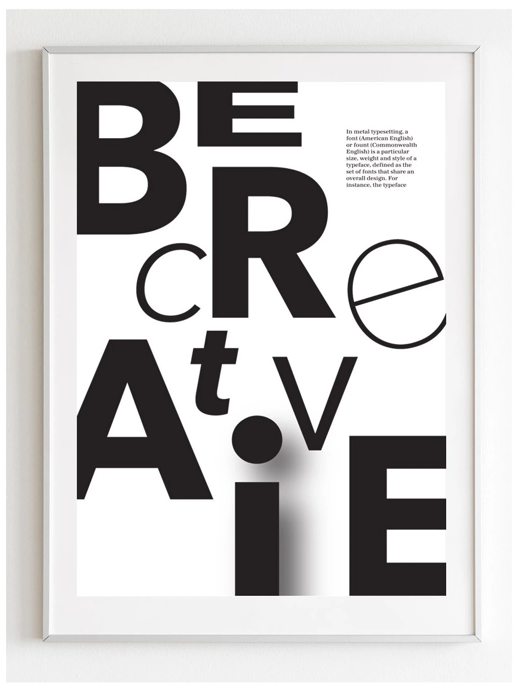 Plakát "Be creative" s anglickým popiskem s bílým okrajem.