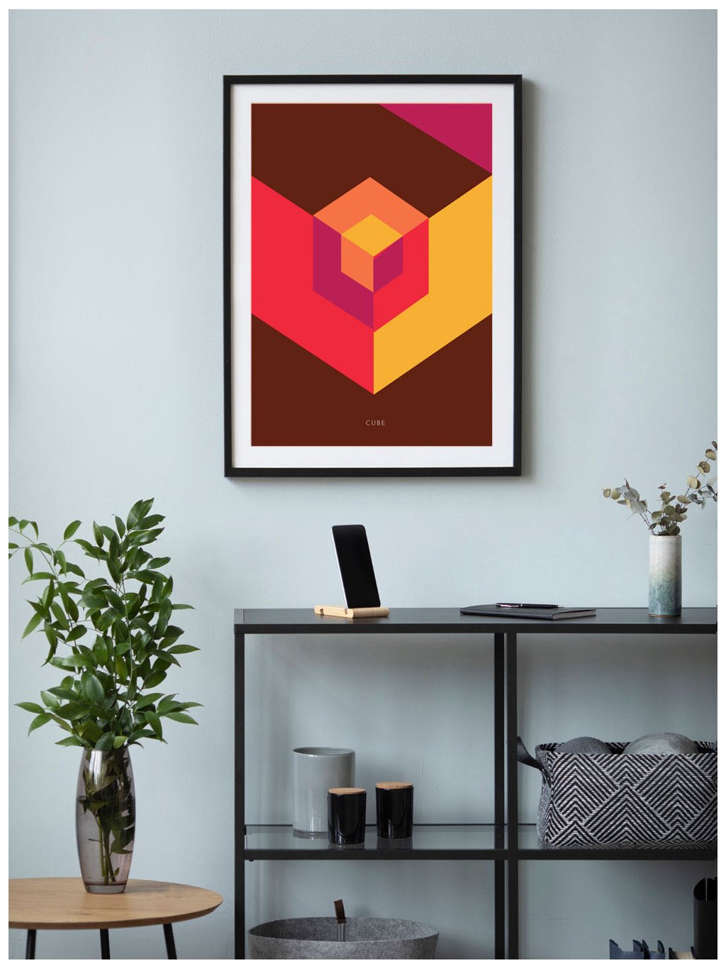 Plakát "Cube" - geometrické autorské plakáty, každý je součástí jednotné série, která propojuje vizuální prvky do jedinečného celku. Tyto plakáty jsou ideální pro moderní a nadčasové interiéry, kde mohou sloužit jako stylová a originální vizuální dekorace.