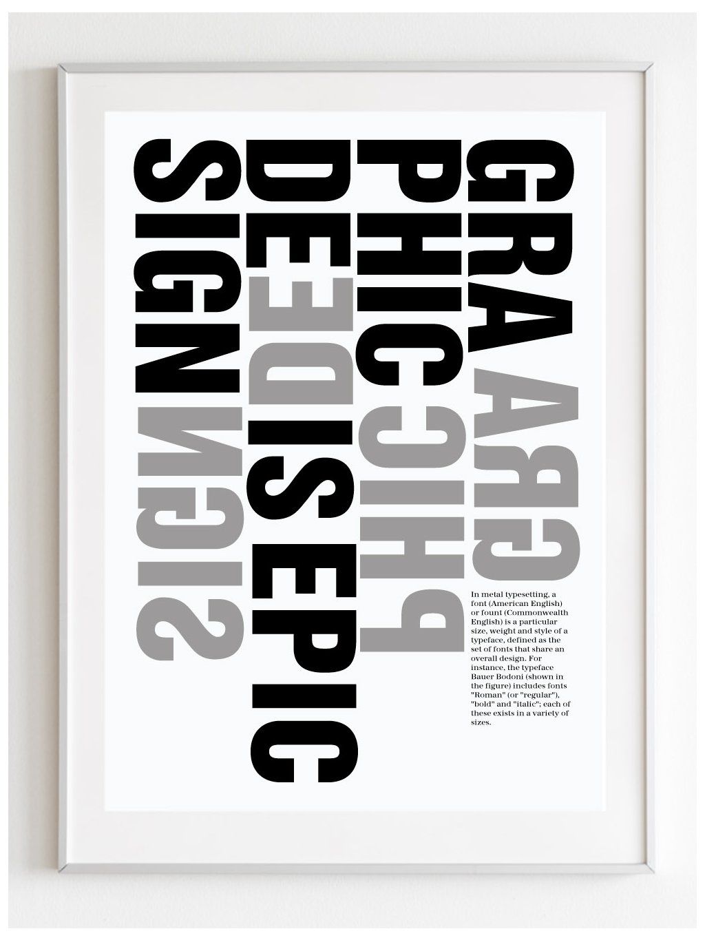Plakát Graphic design is epic s anglickým popiskem. Nástěnný plakát ve fotokvalitě standardně ve formátech 21x30, 30x40, 40x50 a 50x70 cm. Nestandardní formát lze vyrobit na požádání.