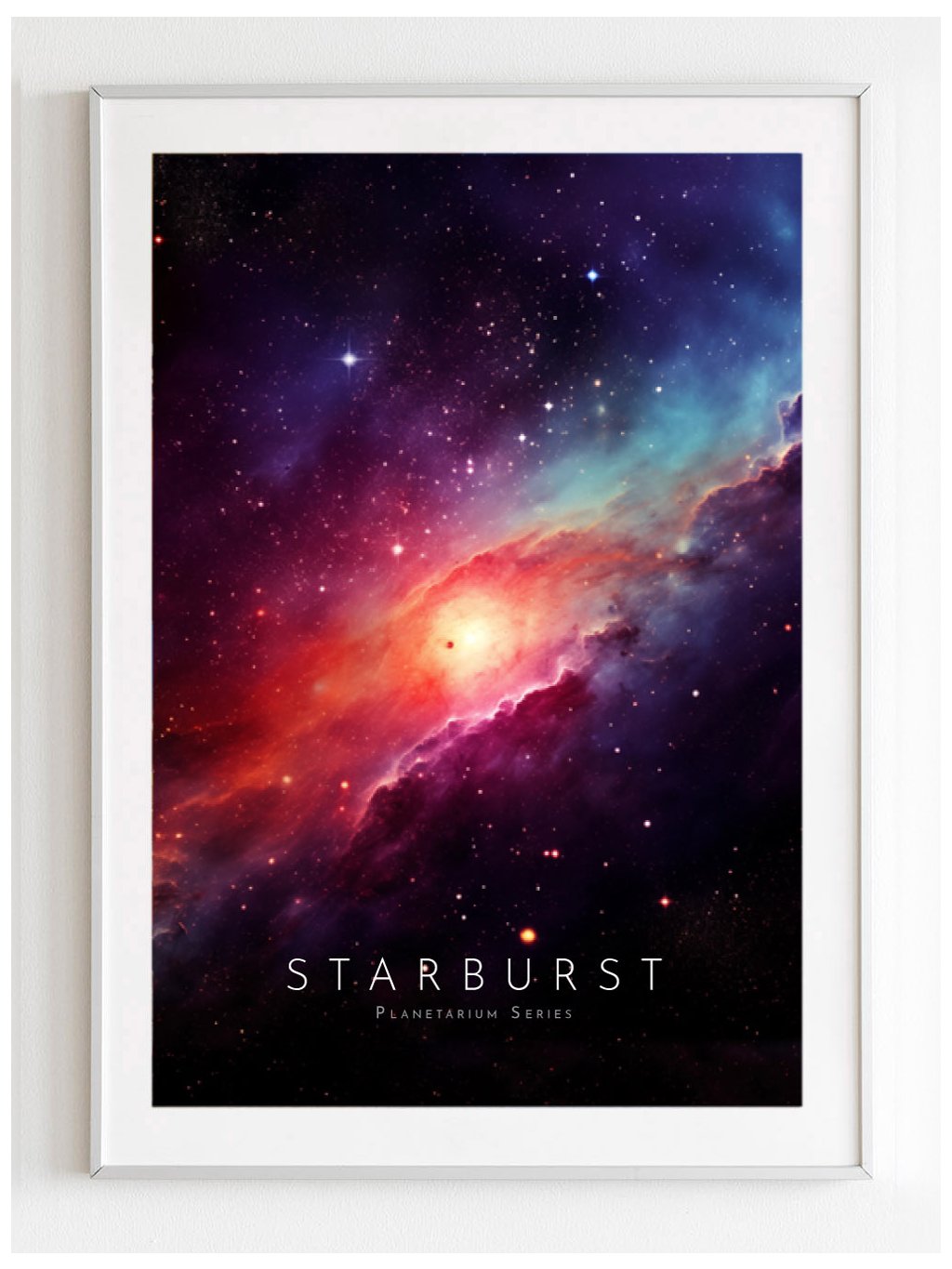 Plakát Starburst vesmírný hvězdný prach s bílým okrajem.