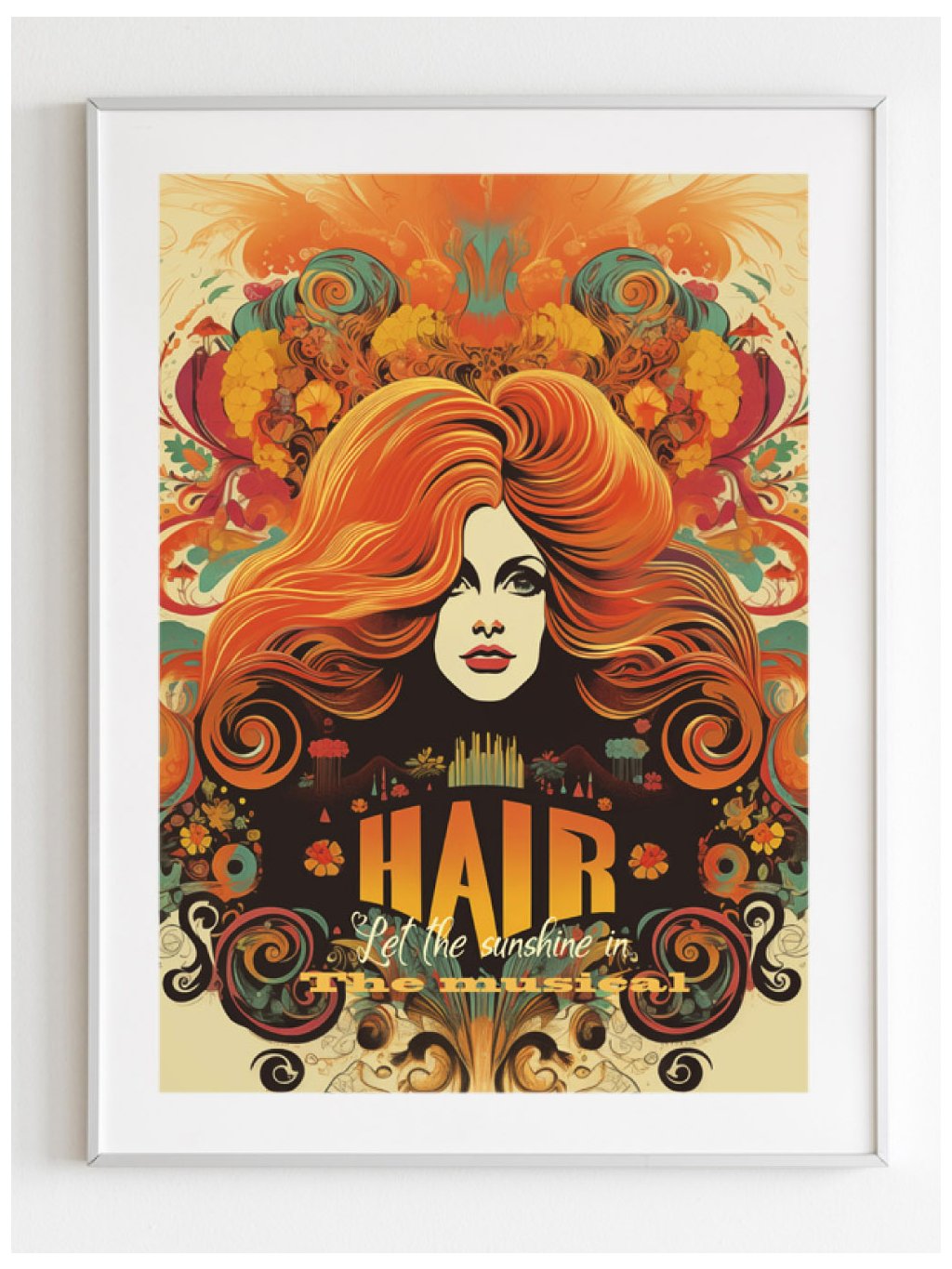 Filmový plakát muzikálu Vlasy (Hair), s bílým okrajem.